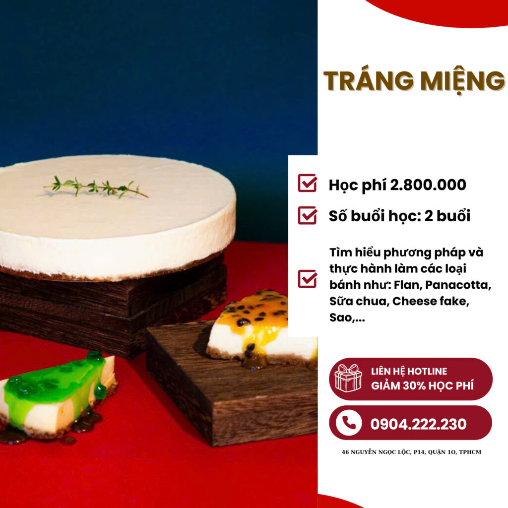 Bạn là người yêu thích ẩm thực, đặc biệt là các món tráng miệng? Bạn muốn học cách làm những món tráng miệng ngon, đẹp mắt và hấp dẫn? Vậy thì khóa học tráng miệng hấp dẫn của chúng tôi là dành cho bạn! Trong khóa học này, bạn sẽ được học tất tần tật […]